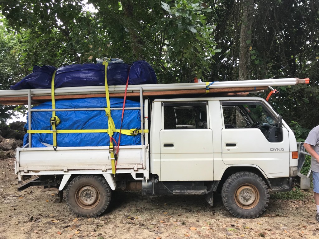 Our location out here in Konomala is accessible by road. From our end of the island, it is a 3.5 hour drive to the nearest little town (Namatanai). Without any problems on the road, it is an 8 hour drive to the town where we get our supplies (Kavieng). Every month or so, we travel in and out in order to get food and supplies for our families. Pretty much all of our logistical needs and emergency plans depend on our truck.
